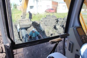 Trabajos de esta característica demandan una cuadrilla que ronda los 6 operarios, un maquinista y Ramón Darío Zalazar, jefe de Departamento de Servicios de la Municipalidad de Resistencia; además de una retroexcavadora, los caños y mangueras.