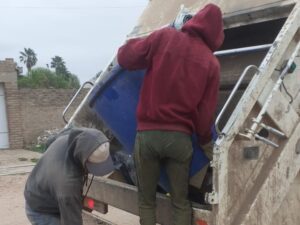 Los trabajos incluyeron la recolección de ramas, la recolección de residuos y el reparto domiciliario de agua, acciones fundamentales para garantizar condiciones adecuadas de higiene, orden y bienestar para los vecinos.