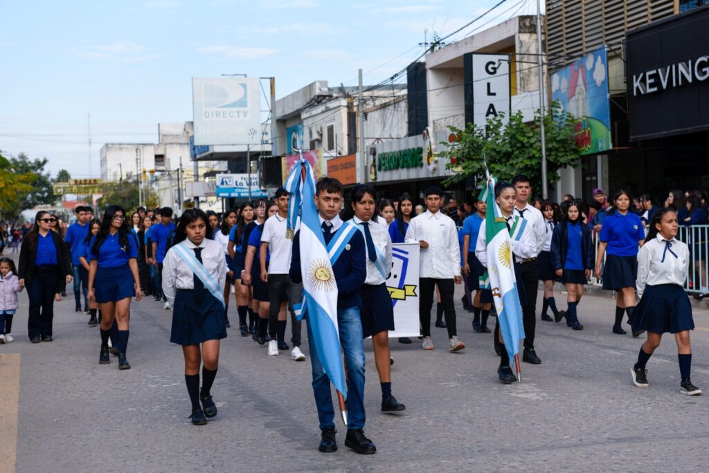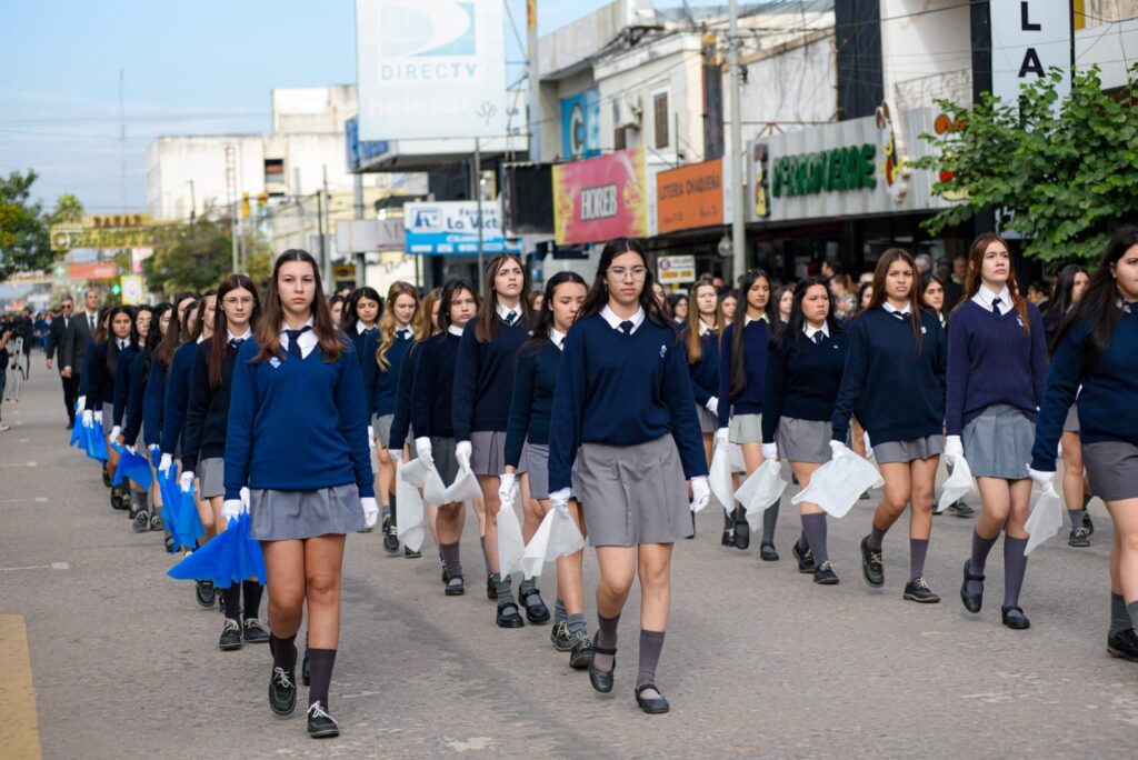 Luego del discurso inició el desfile del cual participaron 30 escuelas secundarias y 24 jardines de infantes, quienes lucieron sus escarapelas y banderas celestes y blancas por la calle 12.