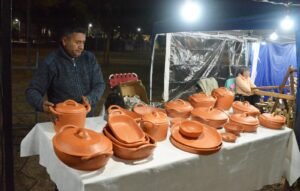 Desde la provincia de Jujuy llegó Félix Erazzo, que ofrece su alfarería en cerámica. “Tengo amigos artesanos de Resistencia que me hablaron de esto y vine, por medio de ellos estoy acá y aprovecho lo que ofrece el Municipio”.
